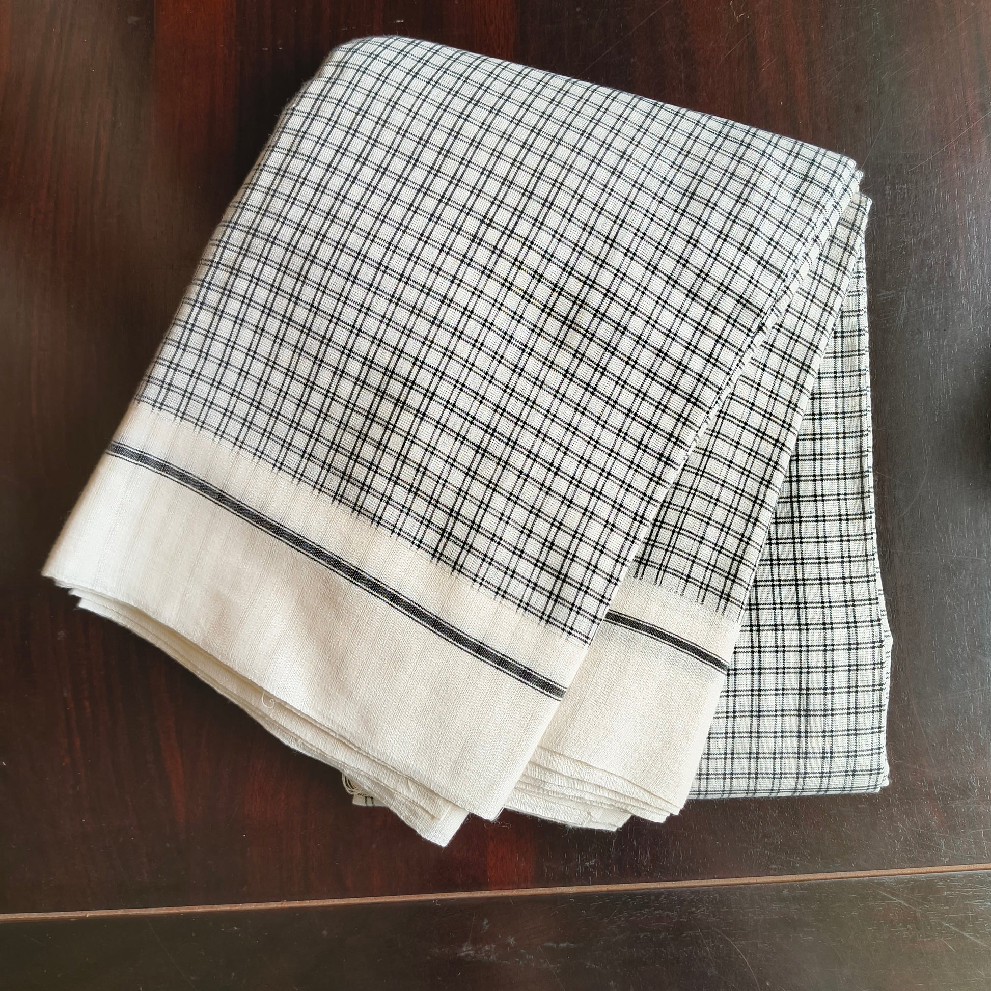 You can never go wrong with this White Patteda Anchu Saree with black checks. The white border has a black stripe giving it the traditional classy finish. This is retro at it’s finest. We’re loving it!
